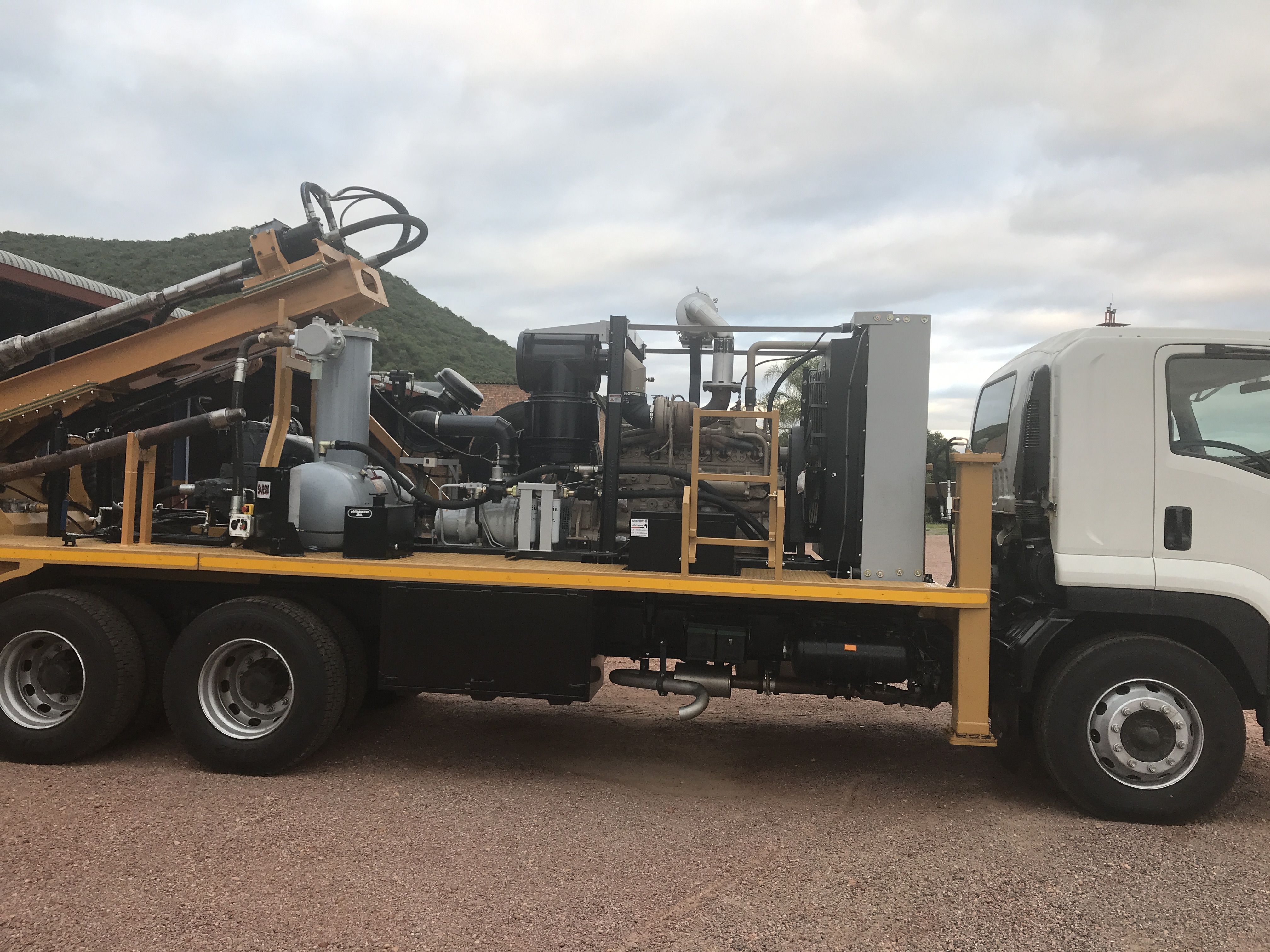 Making money drilling post holes is all about speed - having the compressor and rig all on the same truck give you the advantage of not having to move more than one vehicle to line up with the next hole. This rig can drill a 15 inch hole upto 3 meters deep. A single axle option is possible but i prefer a tipper chassis with the difflock and carrying capacity.